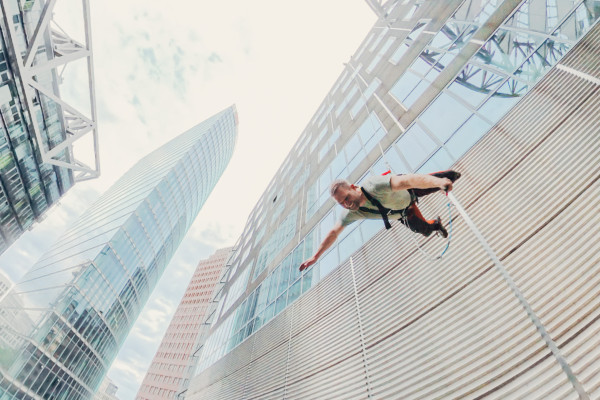 Bereit für den Adrenalinkick mitten in der Hauptstadt? Beim House Running in Berlin läufst Du, gesichert an einer Spezialkonstruktion, senkrecht die Fassade eines ikonischen Gebäudes hinunter – direkt im „Das Center“ (ehemals Sony Center).